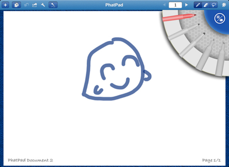 The pencil is your main writing tool in PhatPad, and you can change its color and thickness. There are five thicknesses ranging from fine point to marker size and five colors including red, green, blue, yellow and traditional black. There's also an eraser and a lasso tool to select blocks of writing. When you select an area, you can chose to copy, cut or delete the item. You can also convert the handwriting to plain text or change the ink options.