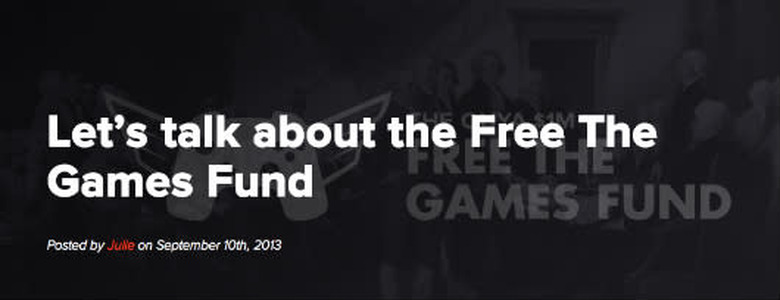 On Twitter, Uhrman is more concise: "No we are not changing the Free The Games Fund. We are sticking with it."