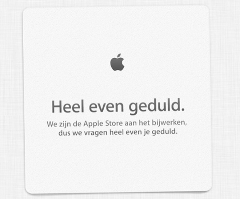 Heel even geduld — the Apple Store is down. No big surprise as Apple is holding its iPhone event later today in Cupertino. We expect the company to unveil its iPhone 5S and a new iPhone 5C model. It'll be a wild day, so hold on tight and follow our liveblog for all the news as it happens.