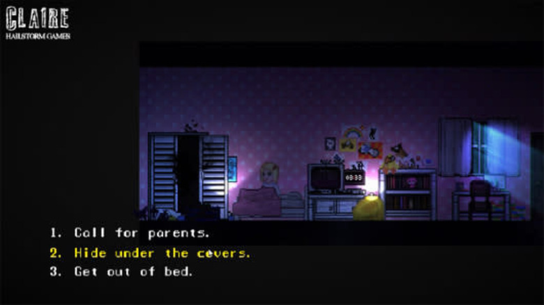 Claire follows the protagonist and her canine companion through several stages of life, in a tale that eventually uncovers her connection to a bizarre world. As a spooky story, Claire adheres to certain tenets of the survival-horror genre, like scrounging for items, managing supplies and helping others trapped in the environment. Enemies, which appear to be black clouds of evil, can be defeated by the light – flashlights and flashbang grenades are specifically mentioned on the Steam Greenlight page.
