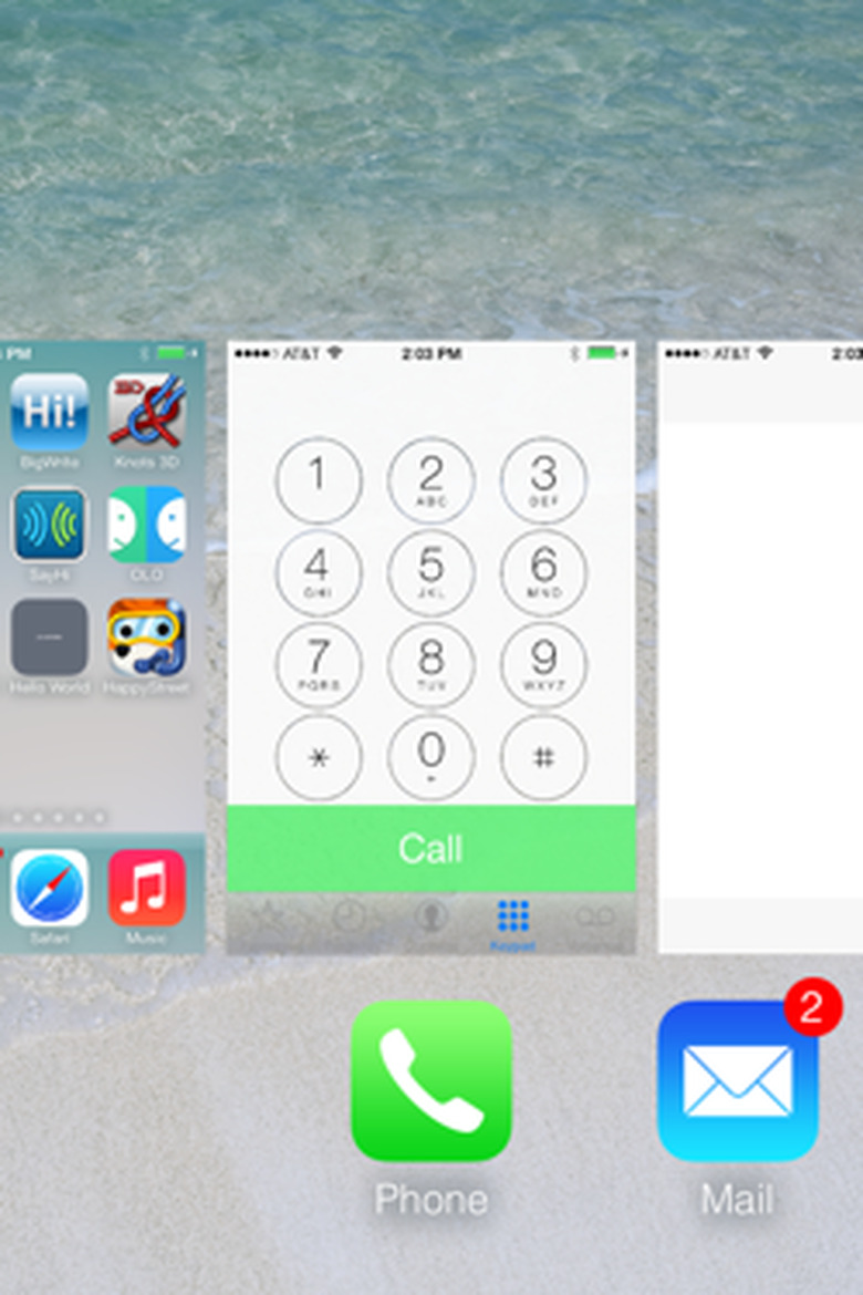 - Switching Apps. In iOS 6, you used to double-tap the home button to access a list of recent apps, which displayed as a scrolling row at the bottom of the display. iOS 7 updates that display, providing a tableau of screen shots enabling you to select an app with a single tap. It's a fabulous new feature, one that gives you a lot more context than a simple icon.