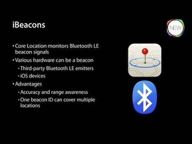 iBeacons was just a word on a slide at WWDC 2013, but as Cohen points out, it has the potential to provide some amazing functionality. To quote Cohen, "Apps can use iBeacons to answer the question 'Where am I?' not in terms of a location on a map, like GPS does, but in terms of where the device is relative to another device. Specifically, where it is relative to another device acting as an iBeacon."