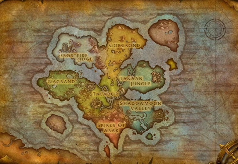 12:45 p.m. PST: And a pretty map of the new continent. Does it look familiar? BC part the second? Click to enlarge! Draenor will have seven zones. The Alliance home city is the Black Citadel before it was the Black Citadel.