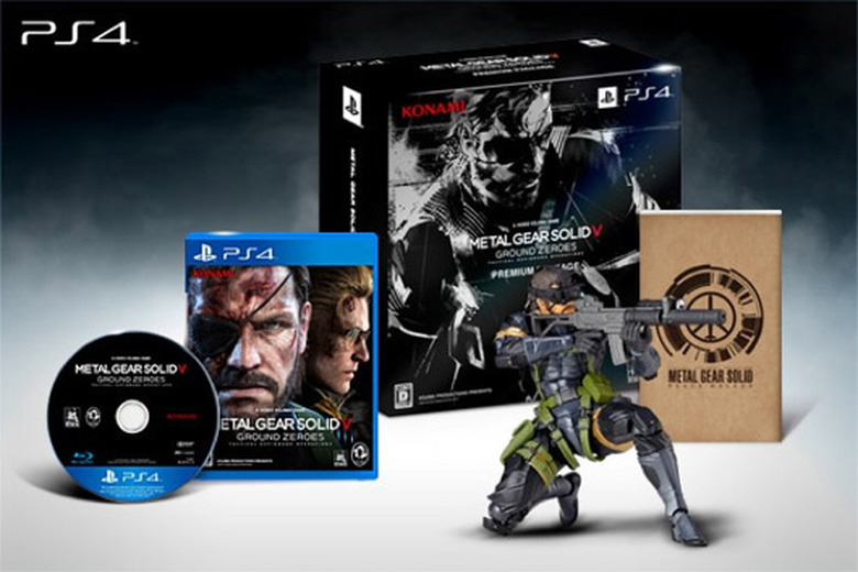 Options range from a game-only retail edition (2,980 yen, or about $30) to a 13,270 yen ($132) Konami Style version, which includes a limited-edition Metallic Snake figure. In between these two extremes is Amazon Japan's Ground Zeroes Premium Package, which bundles a copy of the game, a PlayArts Snake figure, and a Metal Gear Solid: Peace Walker novelization.