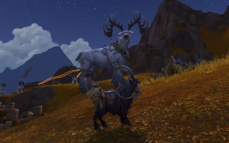 Never seen a stag riding a goat before? I got tired of walking around the Summit, so I buy goats from one of the grummles for some stupid shiny rocks I found in one of the caves. They only last a couple of weeks before collapsing from exhaustion and hoof bruises, but I'll tell you, it's worth it to get a break from climbing those damned mountainsides. What do you mean, just transform into flight form? I guess I could go train that, but that's a lot of effort. I think I'll stick with the disposable goats. (Thanks to submitter Stouthoof of Proudmoore [US-A] for the screenshot!)