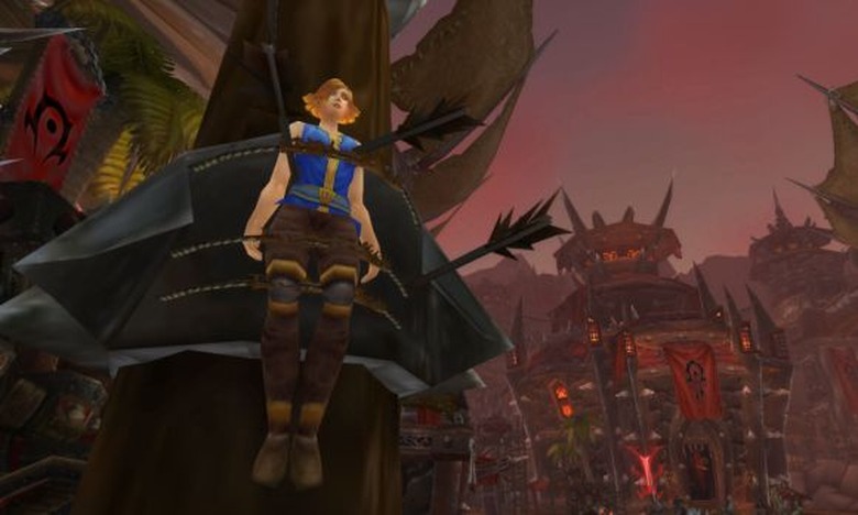 You know what really sucks? Sure, I've been captured from my home in Theramore, dragged to my enemy's capital, and been used as a human archery target by their troops. (By the way, you might want to inform your hunters that they need a little more training. If it takes them three shots to hit a bound captive with enormous, inch-wide arrows, you guys are not going to win this war.) But the real torture here is having to look at the Orgrimmar architecture! Ha ha ha! Oh, I'm dying now. (Thanks to submitter Ezekington of The Gnomeland Security on Doomhammer [US-A] for the screenshot!)