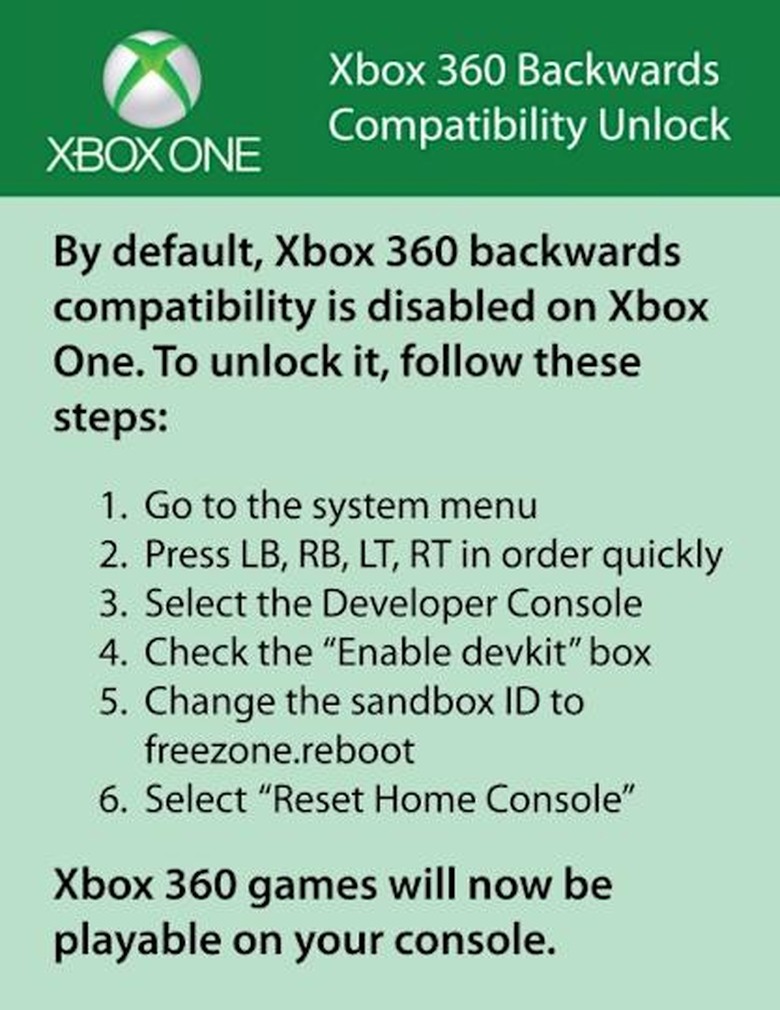 An image that has been circulating around the Interwebz – which we've posted below the break – claims that by following six simple steps, your Xbox One will allow you to play Xbox 360 games. In reality, following these six simple steps is more likely to result in allowing your Xbox One to play the part of "paperweight" in your new one-man/woman play, "O! Technology."