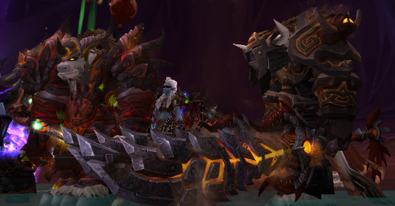 This doesn't mean I don't enjoy collecting loot, although it does play into my transmog fetish – my main, for instance, has specific plate sets I've collected because they match my conception of him as an extremely old, grizzled, scar-seamed, taciturn draenei who has been through untold thousands upon thousands of years of conflict – the two feed into each other. I don't collect many transmog sets or items that don't work with this theme – I have one set of glowing crystalline armor that I justify as being ceremonial garb he rarely ever wears – and wearing specific sets really works hand in hand with setting the tone for how I play him. Perhaps this relates to why I enjoy the game still, after all these years. I've built up tiny biographies, narratives for these people that I pretend to be from time to time.