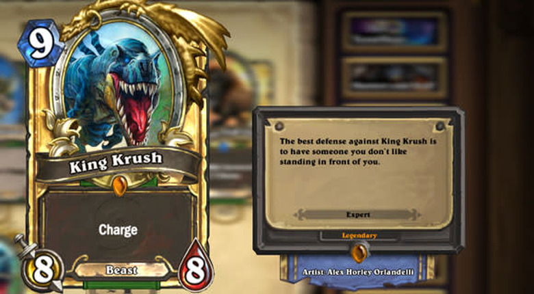 King Krush – If Hearthstone was a Mortal Kombat game and the announcer said "Finish him!", this is the fatality card drop that hunters would use. Seriously, this is your finisher. 8 damage that cannot be responded to in the same turn.