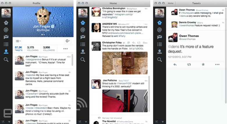 Twitter brought in-line media previews to its mobile apps a few weeks ago; today, it's the Mac's turn. The new Twitter 3.0 app for Mac now shows a quick glimpse of photos from supported services, so you'll know right away whether pictures are worth clicking. A few older features are also making their long-expected debuts, including more detailed tweets (complete with conversations) and full profiles. The new additions aren't likely to give Tweetbot users any regrets, but OS X fans who prefer Twitter's official software will definitely want to swing by the Mac App Store for an upgrade.