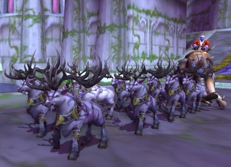 "There are certain ... issues that come with playing Alliance on a realm that is frequently matched in cross-realm zones with Moon Guard," writes submitter Septembre of Farstriders (US-A). Why, whatever could she be talking about? "But every now and then, you get a reminder that there are some genuinely fun and creative people on that realm, like this group I encountered in Darnassus recently." Those druid-reindeer look pretty irritated at having to pull that mammoth. Draenei Santa better watch his back.