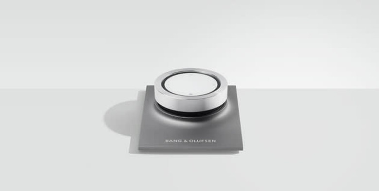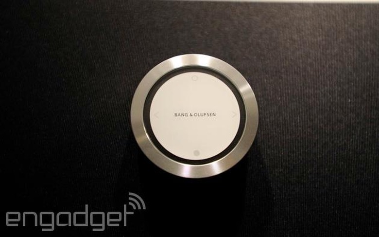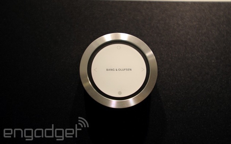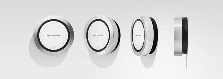 Here at CES 2014, Bang & Olufsen is looking to make access to tunes as soon as you get out of bed "as easy as turning on the lights." To do so, the high-end audio company has announced Beosound Essence: a circular music control dial that can be either wall mounted or fixed to a small metal plate for use around the house. The device features a rotating aluminum ring that doubles as a volume dial with track skipping, play/pause and power touch control on the face. In fact, it'll pick up at the exact point you last listened. That bit of silver alongside minimal graphics and black accents keeps the unit inline with B&O's upscale look. Measuring about two-inches across, the Essence is quite small and only extends a couple of inches off of the wall — when mounted in that fashion. Up to three of the controls can be used in a single room, if you'd like to spread out multiples.