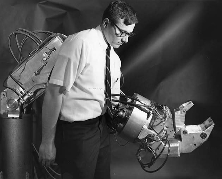 The CAMS project was dedicated to fine-tuning human-control systems, since autonomous robots were still a bit half-baked and would require more computing power than was available. Mosher built the controls so that machines could echo human movements with increased precision, while also augmenting the strength of its human user. In 1956, Mosher's "Yes Man" project was highlighted in Life magazine, which touted it as a "chivalrous robot," capable of such a delicate touch that it could assist a young lady with her coat and even take a selfie after picking up a camera (and not crushing it, essentially). An operator was able to control the robotic appendages because of Mosher's "force feedback," which helped mediate the level of pressure applied through its electromechanical claws. (Imagine a robot ripping off a doorknob as it attempts to simply open a door.) By sending back a portion of the sensory feedback from a remote manipulator to the operator, it helped the user gauge the appropriate level of pressure that should be applied.