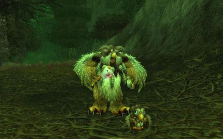 Before anyone gets upset at this flagrant moonkin-on-moonkin violence, today's submitter would like to submit a mea culpa. "I was not drunk, hungry, and about to attack my little ... chick ... cub... baby moonkin companion," writes Pohan of Vengadores de la Horda on Drakkari (US-H). "I swear! I was just about to start attacking Impsy when this cute mini-me appeared in front of me. Don't call the police!" Sorry, buddy, but while it's common for many creatures to kill and eat their young, very few do it with an axe. We're going to have to take you in for questioning. (Don't worry, folks! The baby moonkin survived to adulthood, only to be senselessly killed by you in a mad dash for the treasure in the Gurubashi Arena.)