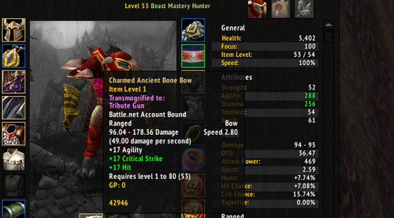 But I'd like to see them go even further and make heirlooms an overlay – if you have an heirloom item, your alts shouldn't even have to equip it. They'd simply get the bonus XP, and that would be all that heirlooms did – no more junking every upgrade you get until level 80/85/whatever the new heirloom level becomes. Now, this would have some down sides – I currently have an heirloom 2h axe that I like entirely because I won't need to replace it until I'm level 100. So I can see why we wouldn't want to lose that, for those of us who don't mind or who even like not needing gear for a specific slot. But for players like me who would like to be able to simply get the XP bonus without throwing away the pleasure of getting an upgrade, a toggle that allowed us to just get that aspect of heirlooms could be ideal.
