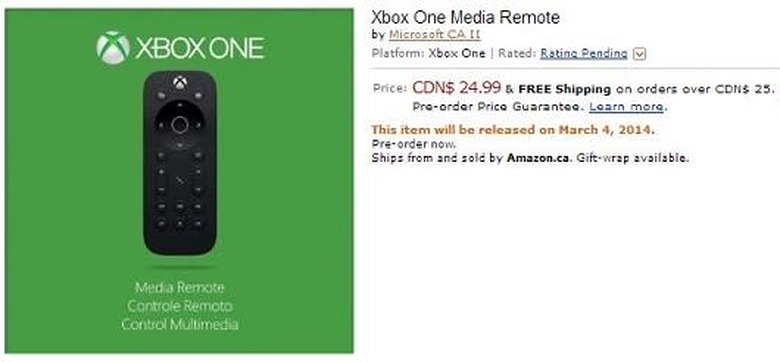 The listing priced the media remote at $24.99 CAD ($22.69 USD) with a March 4 release date. We've reached out to Microsoft to confirm the existence of the remote and will update when we learn more. In any event, we look forward to shouting to our Kinect, "Xbox, where's my media remote?"