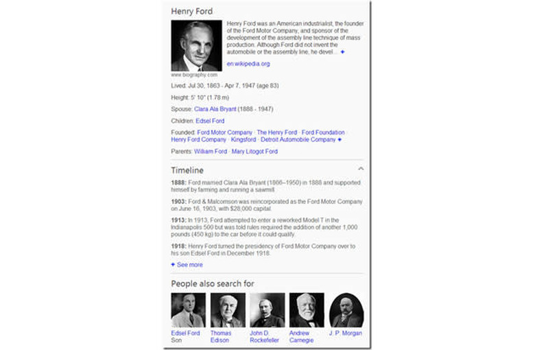 Whether you use Bing or Google, you're surely used to that box on the right side of the screen — you know, the one that gives you quick facts about whatever it is you're searching for, whether it be a celebrity, animal or your next vacation spot. In the case of Bing, that box is about to get a little more informative: Microsoft just launched a new feature called Timeline, which shows a list of major events in a famous person's life. So, if you search for Steve Ballmer, you'll see that he graduated college in 1977 and was named CEO of Microsoft in 2000. (You'll need to click "see more" to get to the part where he stepped down — guy had a long career.) So far, Microsoft says it's generated timelines for about half a million famous people, and that more are being added all the time. Hopefully that includes new Microsoft CEO Satya Nadella — Bing gave us so little information we had to go all the way to Wikipedia for the full rundown.