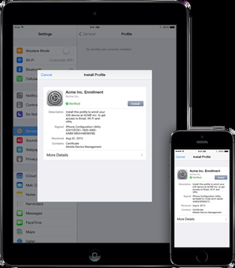 The MDM service allows IT departments to control settings, app installations and policies for a device remotely. Workers who bring their own devices can self-enroll in the MDM program by accepting the MDM installation profile already on their phone. Under MDM, IT can enroll devices in enterprise services (include Microsoft's), update settings, monitor compliance with corporate policies, and remotely wipe or lock lost devices.