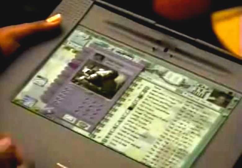 The tablet prototype gives the full functionality of a desktop, whether the teacher is on the sofa chatting or talking to students in the classroom. While wireless networking existed in 1995, it was still years away from being a common feature at home, let alone in a public school. As dated as the fashions are in this video, the work people are doing on tablets is dead on with how we work today. The interface may be different, but the results are the same.