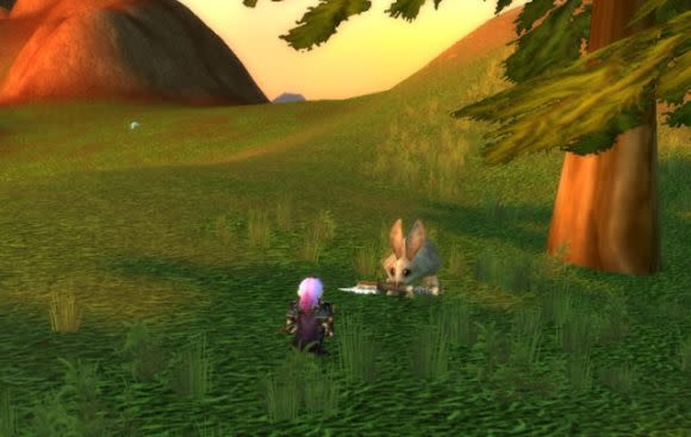 I got 99 problems, but the ongoing bloody critter war in Mulgore ain't one. "My young rogue has been learning the ins and outs of the pet battling system and thought she had it just about figured out," writes submitter Ronyn of Moon Knights on Llane (US-A). "Until she stopped off in Mulgore to pick up a spare bunny for some hasenpfeffer. These were not her normal fuzzy bunnies. These battle pets were armed and ready to fight back. All of a sudden, the dry spice bread in the bottom of her backpack didn't look so bad."