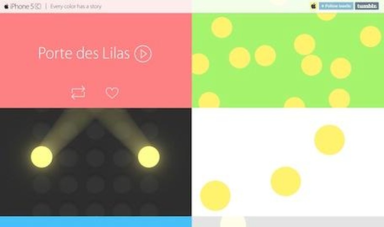 Apple has expanded its iPhone 5c ads first seen on Tumblr to other sites. The campaign is called "Every color has a story," and comprises five 15-second videos with color themes corresponding to the iPhone 5c and its colorful cases. The ads feature animated dots, which represent the dots of the iPhone 5c cases, moving to regional or period music.
