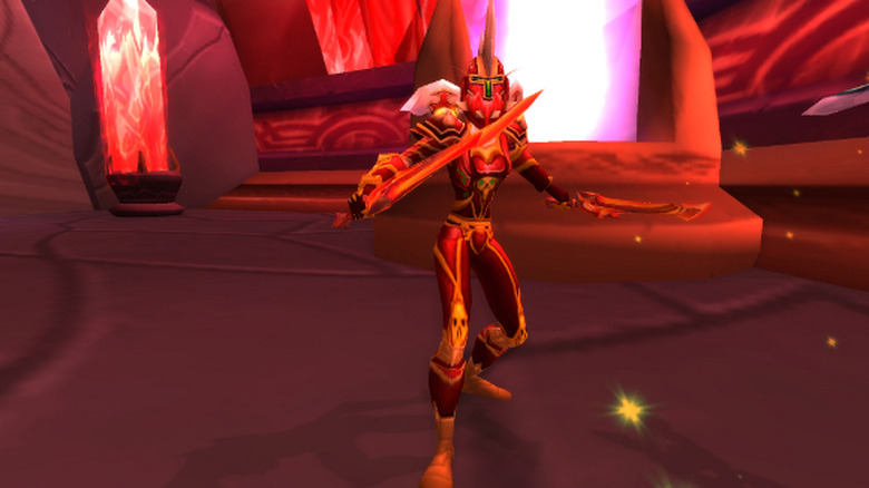 Look, I'm a transmog aficionado. I have no bag space left because I collect gear constantly. So every time I go to Tempest Keep to kill Kael, I run into these guys and they irritate the heck out of me. I already have the Battlegear of Wrath, and its recolor. I prefer the classic look to the Burning Crusade green color dungeon set, but I'd very much prefer that red set above to either, and I can't get it. It doesn't drop anywhere – the only place you'll see it in game is on mobs like the guys in Tempest Keep and Ruul the Darkener, who makes it even worse by dual-wielding Thunderfury while he's at it.