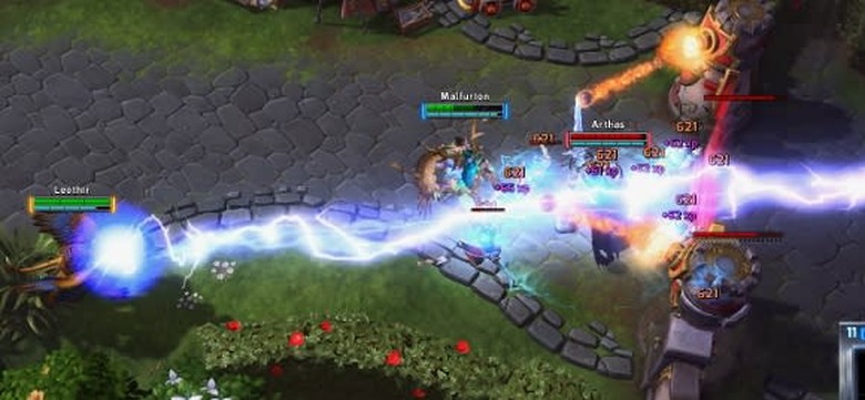 Since you're reading this on WoW Insider, it's likely you're more familiar with standard MMO keybinds rather than those of a MOBA or RTS. Where in an MMO your skills are bound to number keys, MOBAs rely on Q, W, E, and R. Q tends to be your most commonly used skill with R as your long-cooldown Heroic Ability. Heroics, in other MOBAs, are often called your "Ultimate" ability, or "ult" for short.