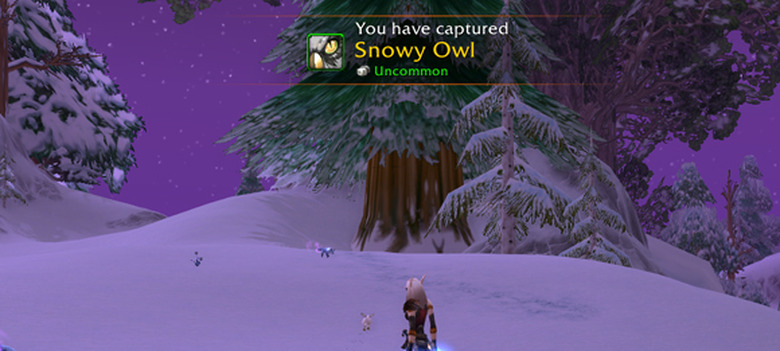 Pet collectors and fishermen take note — the wintery months are almost behind us, and with them, the appearance of wintery pets and fish as well. The Snowy Owl, located in Winterspring, will be gone as of March 20 — the onset of the Spring Equinox out here in the real world. Pet collectors should head to Winterspring now to capture these pets, as they won't be making another appearance until December of this year. This pet is part of the Kalimdor Safari achievement, so if you'd like that Zookeeper title, head to Winterspring and grab an owl of your very own today.