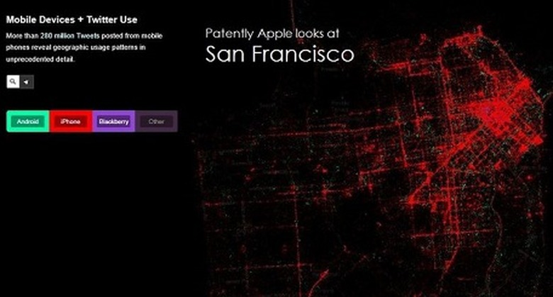 In a follow-up post, Patently Apple provided even more maps highlighting the same data across a number of other cities, from San Francisco to Chicago, and Boston to London. All in all, it seems that the iPhone unquestionably reigns supreme in large cities, at least as it pertains to mobile Twitter usage. Make sure to head over to Patently Apple for the complete list of mapped cities, including a map of the entire United States.