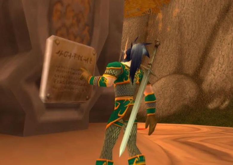 Nascent blood elf paladin Tienston of Argent Dawn (US-H) is faced with his first really challenging quest, and he's not sure how to proceed without revealing a shameful secret. You see, while in school, Tienston was so busy working on his hammer-throwing skills, memorizing all the seals and blessings, and playing on the varsity lacrosse team (come on, you know that belfadins are innate lacrosse types) that he never learned how to read. Please, won't you help elves like Tienston today? Whenever you see a blood elf player looking at something with writing on it, stand behind them and loudly instruct them on what those letters mean in /yell. I'm sure they'll appreciate it.