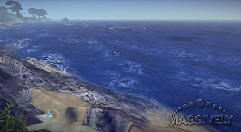 Other than giving long-time testers the feeling that the game is advancing, the biggest effect that the oceans have on Landmark is just the visuals. So how do they look? I have already heard some complaints about the water texture, but in my opinion it is actually pretty attractive. It really gave me a sense of rolling on the high seas as I ran out on it to check things out. The color was vibrant; the foam crests were dynamic. I'm happy with it. And I definitely am looking forward to the addition of underwater plants and swimming. But don't take my word for it: You can see it all for yourself during the livestream at 6:00 p.m EDT tonight on Massively TV.