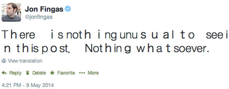 Holloway is quick to stress that this isn't cryptography. Since anyone can use the tool, your hidden meaning is fair game to anyone who tracks down his website and pastes in your text. It's also patently obvious that this isn't an ordinary post, so suspicious types will know that something's up. Still, if you ever want to enjoy a degree of obscurity on Twitter — or just want to mess with your followers — you can check out the utility at the source link.