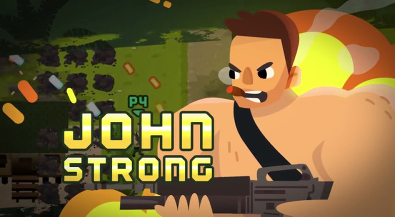 Tango Fiesta is a top-down co-operative two stick shooter for up to 4 players, where the wacky, frenetic, comical, over-the-top, cheese-fuelled action of your favourite 80's action movies becomes reality. Gamers across the globe take control of John Strong – the original hero's hero – as you and three friends shoot, blast, brawl, dodge roll, upgrade, unlock, smash and puntastic one-liner your way through the true stories behind all of the greatest 80's action classics in this endless (and endlessly entertaining) arcade action 'rogue-lite'.