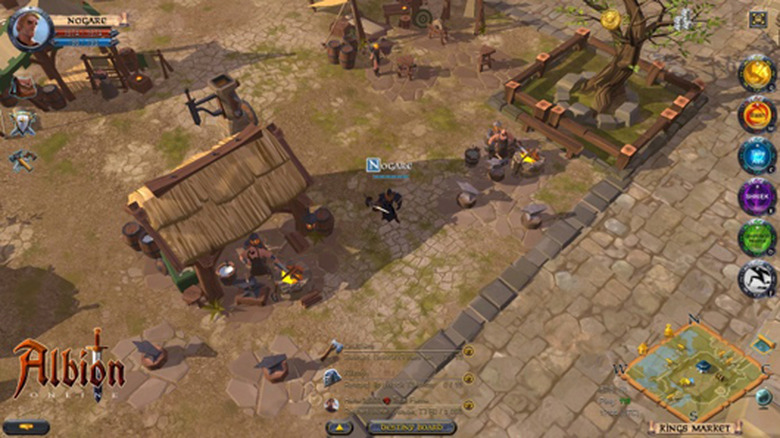 Much of Albion is wild and untamed, with monsters free to roam and attack as they wish, there are also numerous cities which function as safe spots. Protected from the wilderness, with established economies and a series of services available for player use, such as crafting stations and merchants — a respite from the constant danger of the outside world.