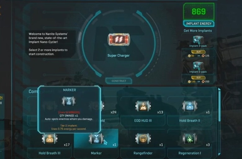 Players begin with an enhanced targeting implant (that tosses up player names and health bars onto the HUD) but can swap those out for more interesting ones, such as implants that protect you from fall damage or that mark players who have shot you. Implants need a charge to function, and players can either earn or pay for chargers to power these. SOE said that it is definitely listening to players for ideas for future implants.