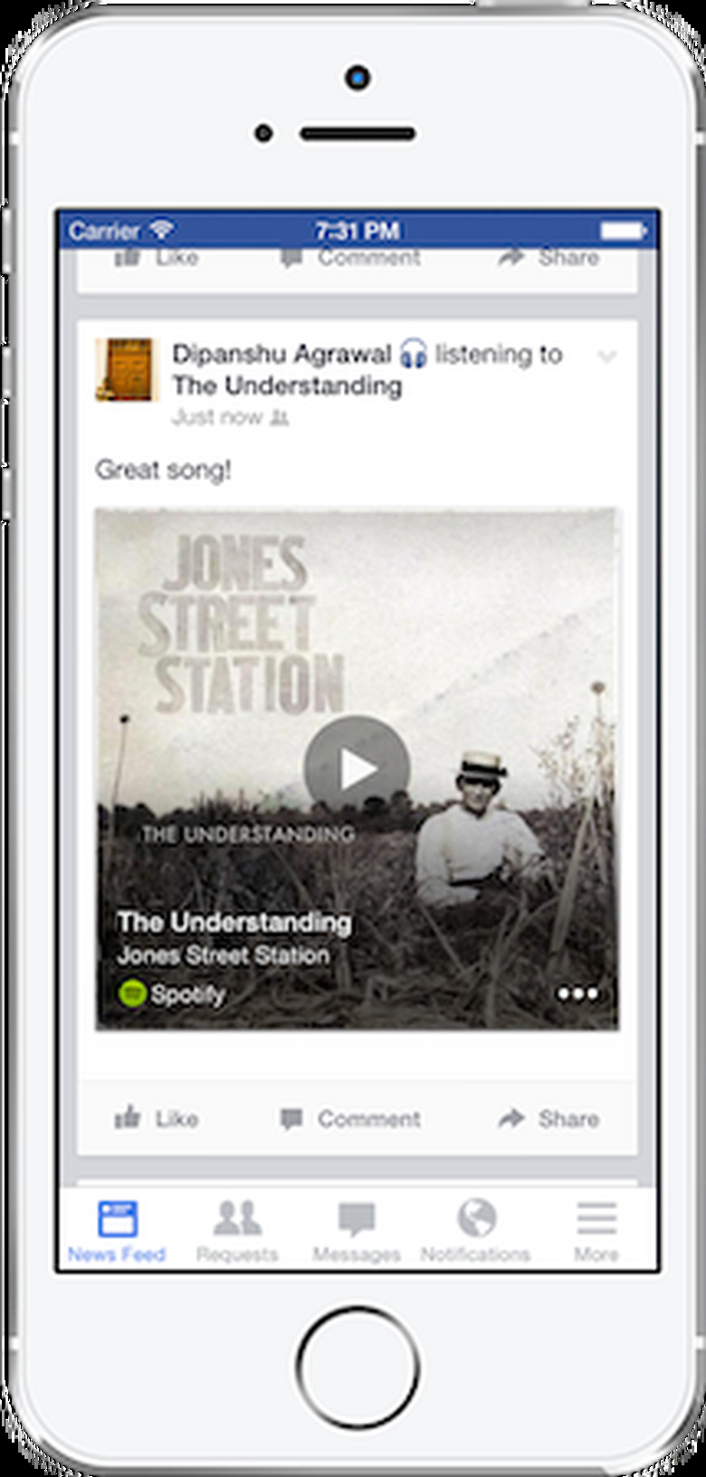 If you've ever wanted to tell your Facebook friends what you're listening to — say, REM's "It's The End of The World And We Know it (And I Feel Fine)" — without having to spell the whole thing out, well, now you can. Facebook has just announced a new option in its mobile app that can detect the song, TV show or movie that's playing in the background just by using the phone's microphone. Once it names that tune (or show), you can simply insert that info into your post with just a few taps — no typing required.