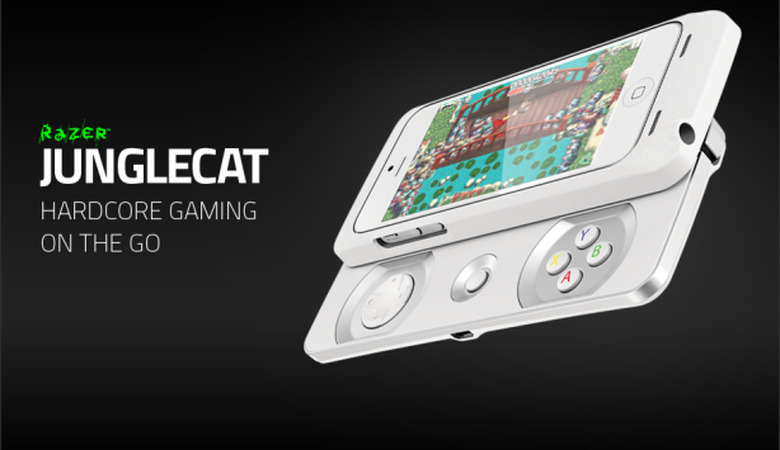 A new peripheral from Razer designed for Apple's iPhone 5 and 5S models will give customers a slide-out gamepad, complete with triggers, face buttons and a D-pad. The Junglecat – we assume so named because it folds in on itself and helps you play video games ... you know, like a cat – already works with dozens of iOS games, and users can store up to 20 personalized profiles that adjust sensitivity and button mappings.