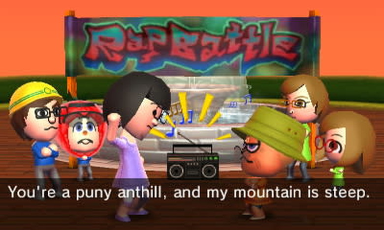 Voice synthesis also makes for some amazing musical possibilities. I took great pleasure in writing my own lyrics and hearing my raspy-voiced Miis sing terrible songs about the kind of foods that they like. If you're lucky, you might even catch your Miis breaking out into spontaneous rap battles. I hesitate to call a Mii rap battle a life-changing experience, but ... it kind of is.