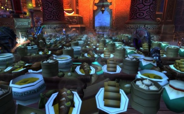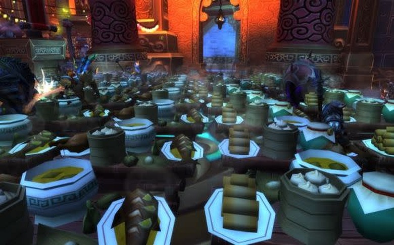 Sure, filling the Shrine of Two Moons with Great Pandaren Banquets might have seemed like a good idea at the time. But just wait until those fish start to rot and whatever kind of soup that is begins to ferment. And are those garlic cloves sitting out in the open, or just poorly rendered potatoes? They'll have to quarantine the whole area and send the Horde over to hang out at the Shrine of Seven Stars. Nothing bad could come of that idea. (Thanks to submitter Jedi of Ghostlands [US-H] for the screenshot!)