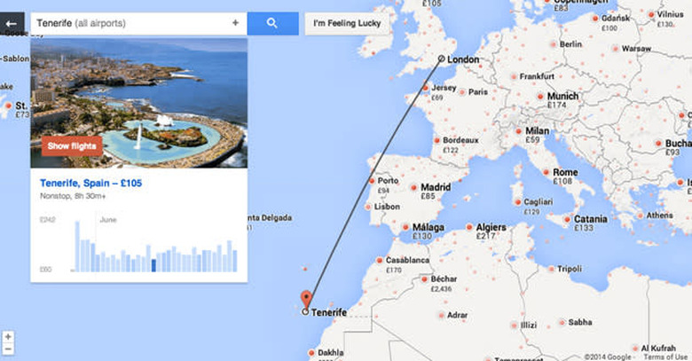 Google Flight Search is fine if you already have a destination in mind, but what if you simply want to sate your wanderlust? That's where a new "I'm Feeling Lucky" button comes into play. Hit that and the search tool will suggest a random place to go; if you're not feeling quite that spontaneous, you can set budget and time limits. Google has also added some tools for those willing to do some legwork, including a full-screen exploration mode and a region browser that suggests trips within the boundaries you've chosen. All the new features should go live today, so you now have plenty of opportunities for spur-of-the-moment expeditions.