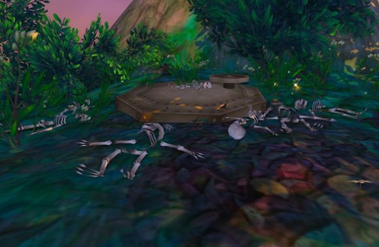 "While exploring south of Krasarang Wilds, I found this out on an island in the middle of the bay," writes submitter Arugadh of The Brotherhood of Iron on Wyrmrest Accord (US-A). "The skeletons are too small to be pandaren – um, adult pandaren, anyway. Which is implying that either gnomes or goblins have been in Pandaria for a lot longer than they want us to believe, or that those bears are doing something awful involving child sacrifice to whatever lies below their land. You know, whatever it is that sends up those tentacles when we farm."