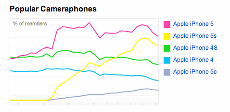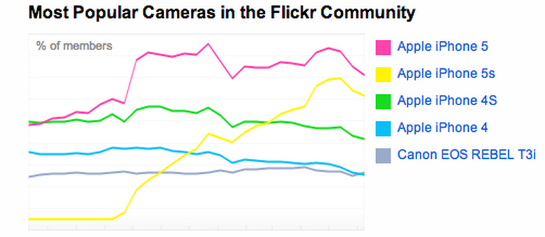 When we take a look at the most popular cameras used by the Flickr community, various iPhone models occupy four of the top five slots. Note, though, that both the iPhone 4 and 4s make the list while the 5c is nowhere to be found. Interestingly, iPhone 5s usage on Flickr hasn't yet caught up to the iPhone 5. According to metrics available on Flickr's website, there's an average of about 12,425 daily users who use an iPhone 5 compared to about 9,705 users who use an iPhone 5s. And believe it or not, there's an average of about 1 daily user who makes use of an Apple QuickTake.