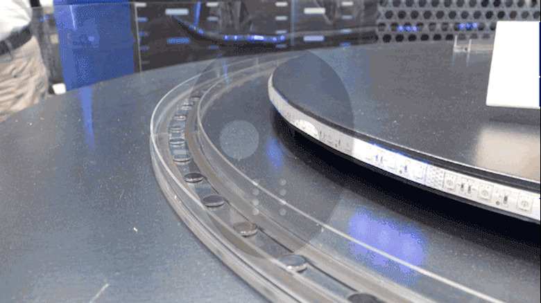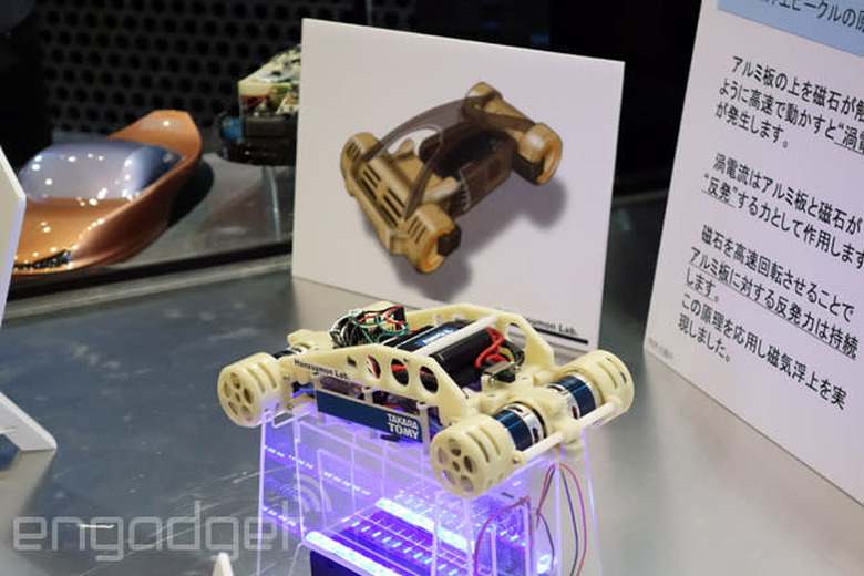Takara Tomy promised us that maglev technology would make its way to playsets next year, when we spoke at this year's Tokyo Toy Show. It had two very different toys on hand, one a train that the company claims can reach up to 600 KPH (relative to its scale, at least). To our untrained eyes, all we can say is it seemed pretty damn fast. The train contains its own magnet that levitates it off the plastic track, which is itself laced with magnets. The resulting air cushion reduces one of the biggest buzzkills in all of physics: friction. Since the magnetic field produces both an upward and forward thrust, there's no need for a set of Hot Wheels-style accelerators that manually hurl your car around the track.