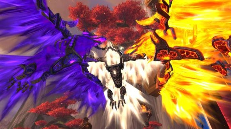 Okay, this Color Run thing has gone too far. It was irritating enough when it was just stoner-type college kids messing up paint jobs on residential streets. But now they've gotten the phoenixes involved. Phoenix, you are a proud and noble creature! Do not degrade your legacy by participating in these shenanigans! It's bad enough that they named that terrible airport connection city after you. (Thanks to submitter Hawk of Expiation on Aggramar [US-A] for the screenshot!)