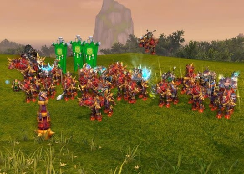 "For sure you'll get a lot of these, but the guild said I had to send this one to you because you wouldn't have one from Spectacular Death on Llane (US-A)," writes guild leader Gimmlette. "Tonight's event was to kill the Mists of Pandaria world bosses and we started with Galleon. We had 24 people in the raid, including the two druids who were levels 50 and 46. (Yes, they died; a lot, frequently, over and over, but that is the guild name.) I saw the video touting the Warforged Nightmare before logging in and knew I had to have this mount. The fact that everyone in the raid could get a temporary one was a huge bonus. I know at least three people were going to get the mount after having the chance to ride into battle on it. As Lasts said, 'OMG! It dances! Sold!' Well done, Blizzard. Now the only problem is, do I make a transmog that matches my horse?"