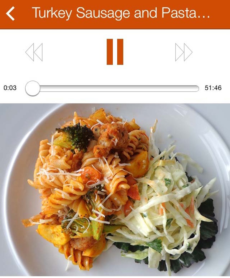 The directions are in real time and you can hear the narrator actually preparing the recipe as she walks you through the steps. You can pause and rewind anytime you want, but the app is designed to actually let you prepare a meal without touching your iPhone.