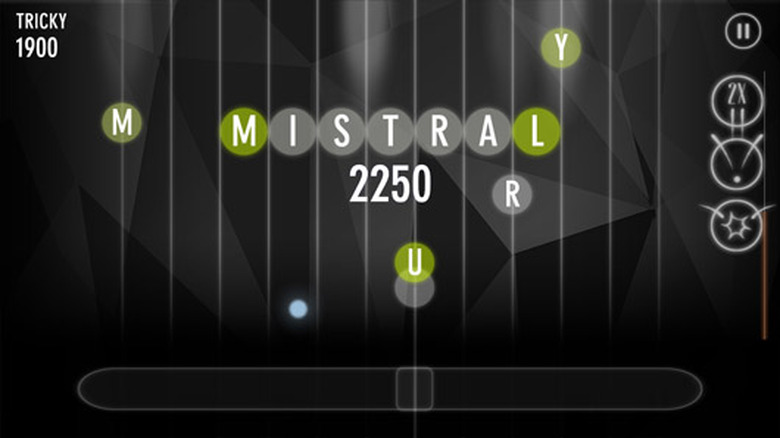 In Alphabeats, players slide a paddle across the bottom of the screen that grows in size as it catches falling letters. Captured letters can be strung together to form words, which translate to points tallied at the end of each track. Fez composer Disasterpeace and Threes' Big Giant Circles headline Alphabeat's electronic soundtrack, with additional songs available via in-app purchases.