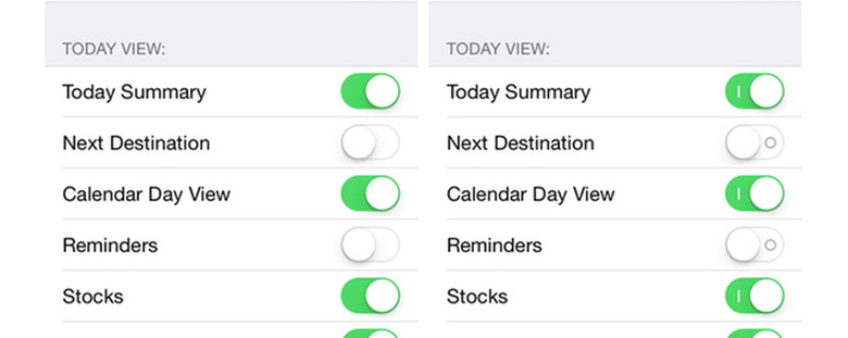 iOS uses the standard power button label that is used on electronic devices — a circle represents the "on" state and a line represents "off." Between the color and the label, you should have minimal difficulty in determining whether an option is enabled or disabled in the settings. Besides its functional purpose, the added labels also look nifty in each switch icon.
