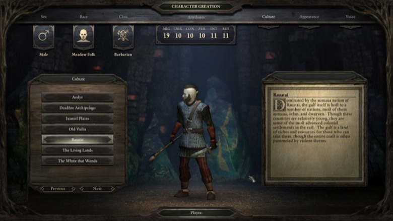 After you decide on one of six races, including the familiar Dwarf and the mysterious Godlike, you sculpt your avatar for class, gender, appearance and ethnicity. A Human from the savannah, for instance, won't share the same pale skin as those from the meadows, and that's if you don't change your mind and turn yourself into an Elf instead. Movement through the different steps in character creation is non-linear, so you can make a small change in history without backing up over all your selections thus far.
