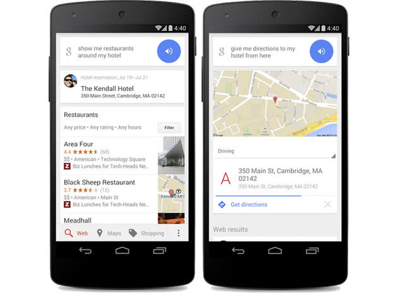 When you land in a strange new city, your first instinct may be to see what there is to do near your hotel. However, searching Google for nearby attractions can be a hassle if you don't remember your hotel's name or address by heart. That memorization is no longer necessary after today, though — Google has updated its search engine to use the booking confirmation in your Gmail as a locator. If you want to look for a late-night diner, all you have to do is ask Google to "show restaurants around my hotel." You can also get directions to or from your accommodations, so you should reach a welcoming bed (or your flight) just a little bit faster. The addition makes the most sense if you're using voice search in one of Google's mobile apps, but any traveler can give it a spin.